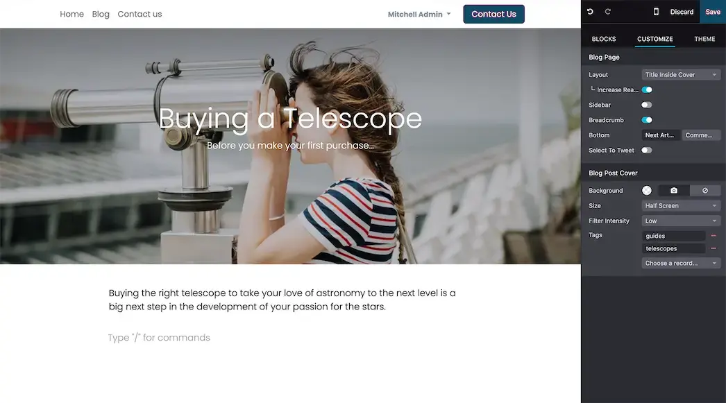 Drag and drop designed blocks to create beautiful blog posts. Blocks are highly customizable, from the content to the layout.
