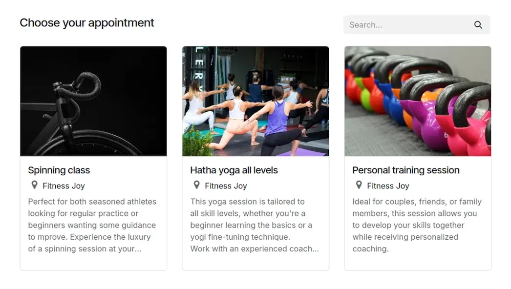 Appointment types: Create appointments for personal trainers or gym time slots, and let your clients book online with ease.