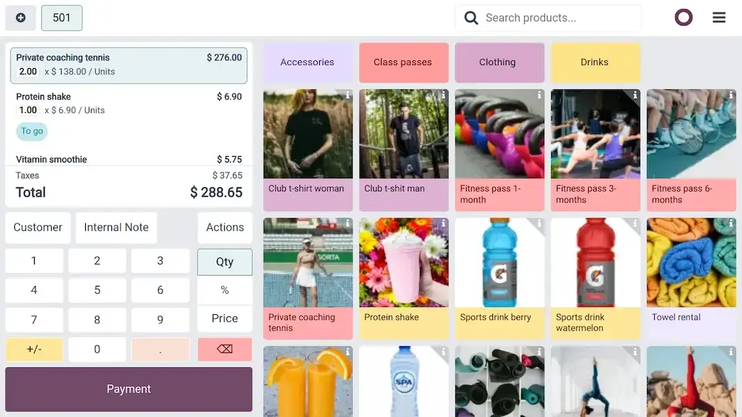 Intuitive Point of Sale: Set up the Point of Sale app to let your clients enjoy a sports drink after class or purchase accessories, merch, and class passes with ease.