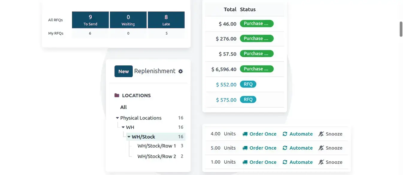 Simplify your RFQ and purchase order management with automated reordering systems. Design unique rules and restocking methods, and integrate your critical processes where it makes sense — the decision is in your hands!