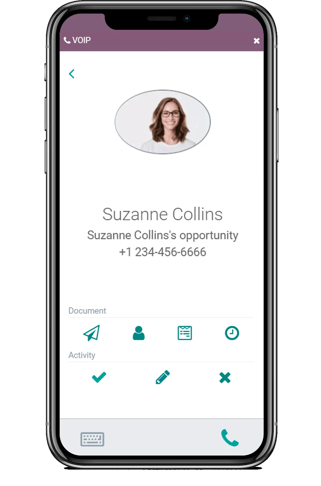 The VoIP widget integrates with Odoo apps, so you can get your work done more efficiently, without switching tabs or frantically searching for information.